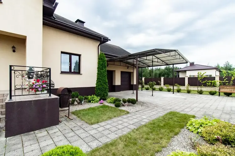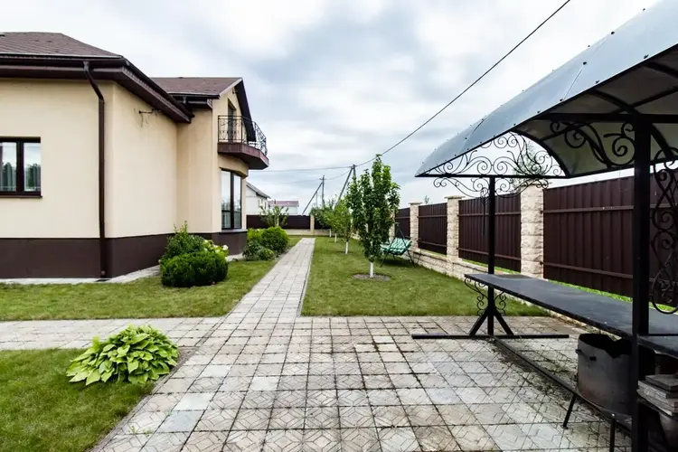 • Просторная зона отдыха с большим мангалом под навесом, коваными скамейками