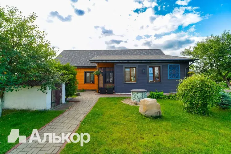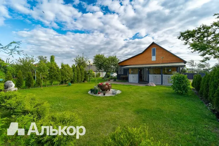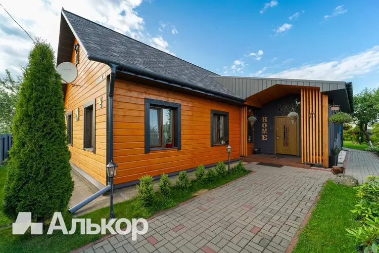 Общая площадь дома составляет 106 м2, жилая – 60 м2, кухня-гостиная - 25м2. Дом деревянный, обшит имитацией бруса, два входа с красивым оформлением. Кровля мягкая, окна ПВХ, водоснабжение – скважина и колодец, канализация – септик, электроснабжение (220 В).