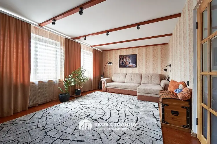 Четырёхуровневый коттедж с хорошим ремонтом, цокольным этажом и участком 18.98 соток. Центральные коммуникации, газовое отопление.