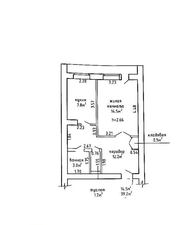 Эта прекрасная квартира располагается на четвёртом этаже четырехэтажного кирпичного дома, построенного в 1990 году. Просторная общая площадь составляет 39.2 кв.м., жилая 14.5 кв.м., кухня 7.8 кв.м.