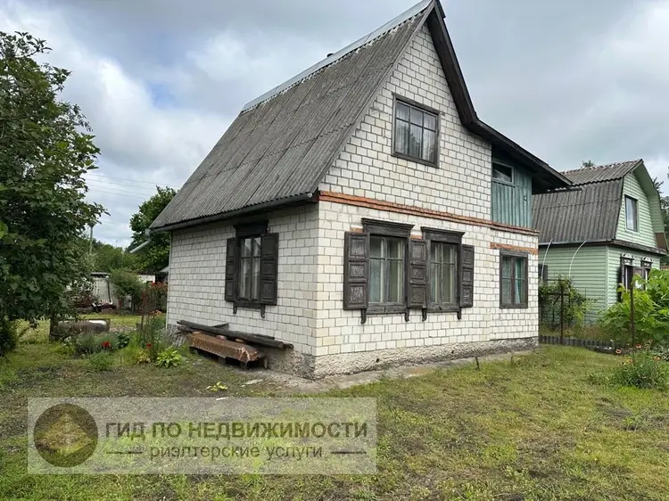 На участке расположен кирпичный садовый дом 1991 года постройки с обустроенной мансардой и отдельно стоящая кирпичная баня, кирпичный гараж, сарай, уличный туалет. Стены снаружи утеплены и обшиты вагонкой. Перекрытия деревянные. Крыша шифер. Окна двойные деревянные. Межкомнатные двери деревянные. Общая площадь дома 61,1 м. кв. На 1-м этаже летняя кухня 12,6 м2, уютная гостиная с печью 15,7 м2 и погребом 1,5*1,5*1,7м, и комната с удобной лестницей на мансардный этаж, на котором расположена просторная спальня. Отопление печное. Электричество в доме.