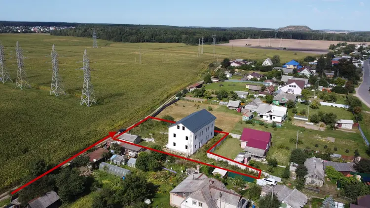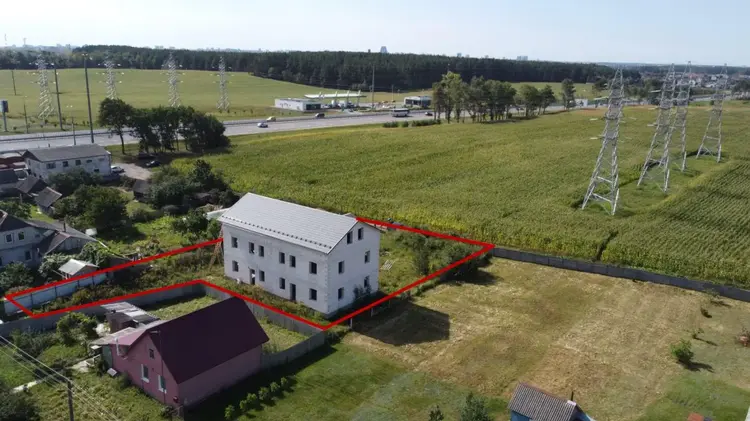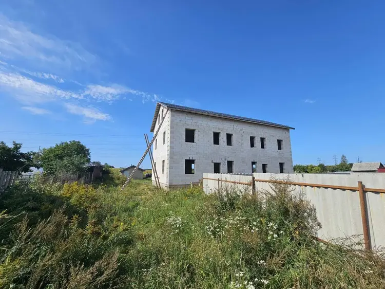 На участке незавершенное капитальное строение - жилой дом. Трехэтажный дом построен из газосиликатных блоков. Фундамент железобетонный. Крыша качественная металлочерепица. Высота потолков- 3.15м.