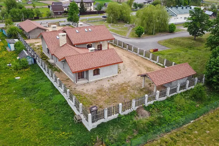 - Вся территория огорожена кирпичным оштукатуренным забором, под который заливался ленточный фундамент 1.6 метра