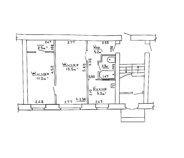 Параметры квартиры: общая площадь- 42,5 кв м жилая площадь- 29,2 кв м, кухня- 5,2 кв м.