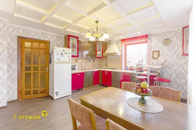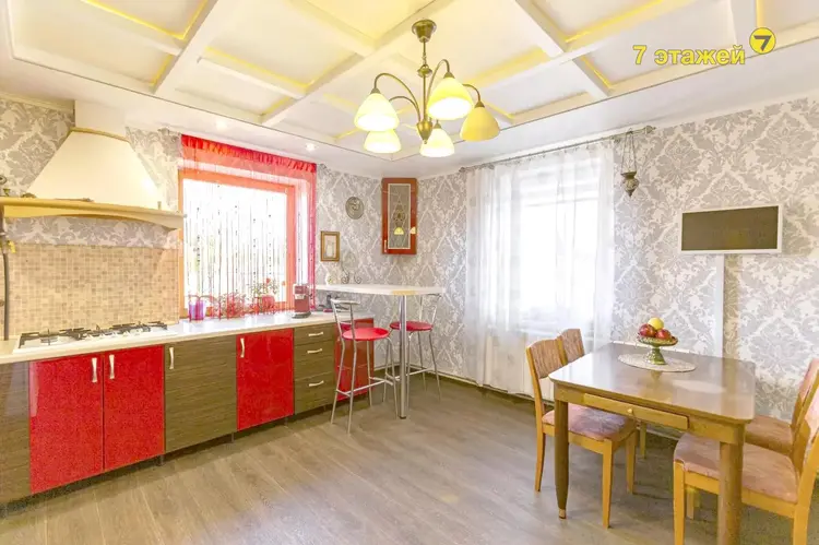 Площадь застройки дома составляет 143,1 цкв.м., общая площадь — 127,1 кв.м., четыре жилые комнаты - площадью 78,2 кв.м., одна комната проходная - гостиная, кухня площадью 21,6 кв.м. Потолки имеют высоту 2,52 метра, в доме на всю площадь кухни есть погреб.