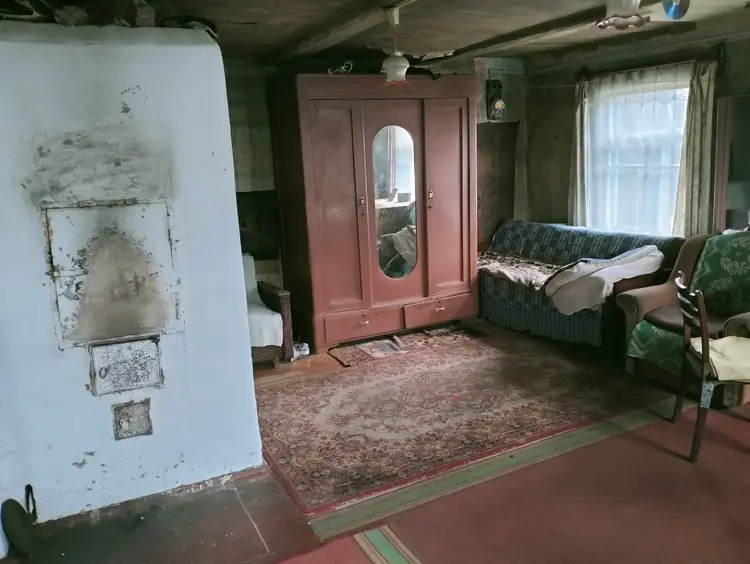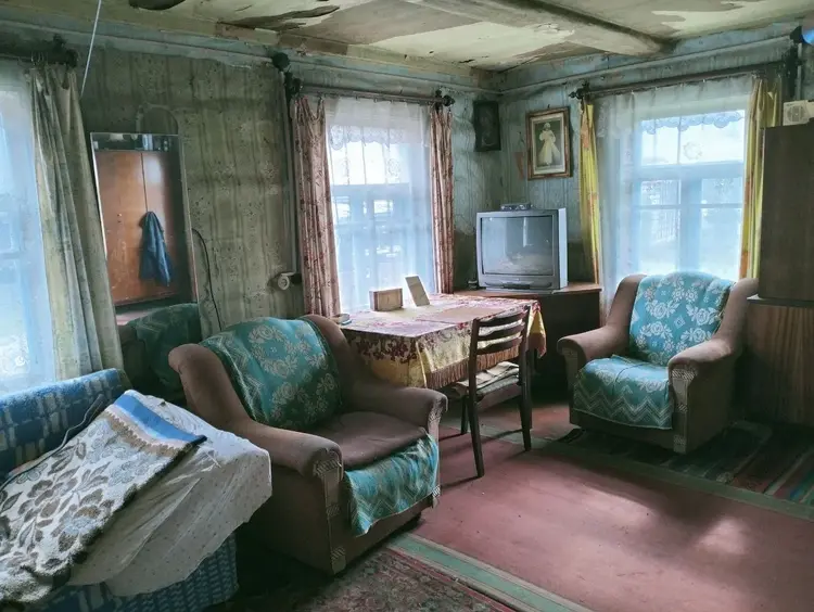 Дом сложен из деревянного бруса, сохранился хорошо, крыша устлана шифером. Обе печи работают исправно. Подведено электричество.