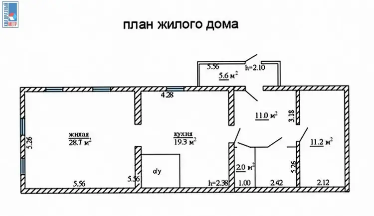 Общая площадь 82,7м2 кв.м. Жилая площадь 28,7 м2. Площадь кухни 19,3 м2. Большая жилая комната, большая кухня, современный санузел, прихожая, кладовая, веранда.