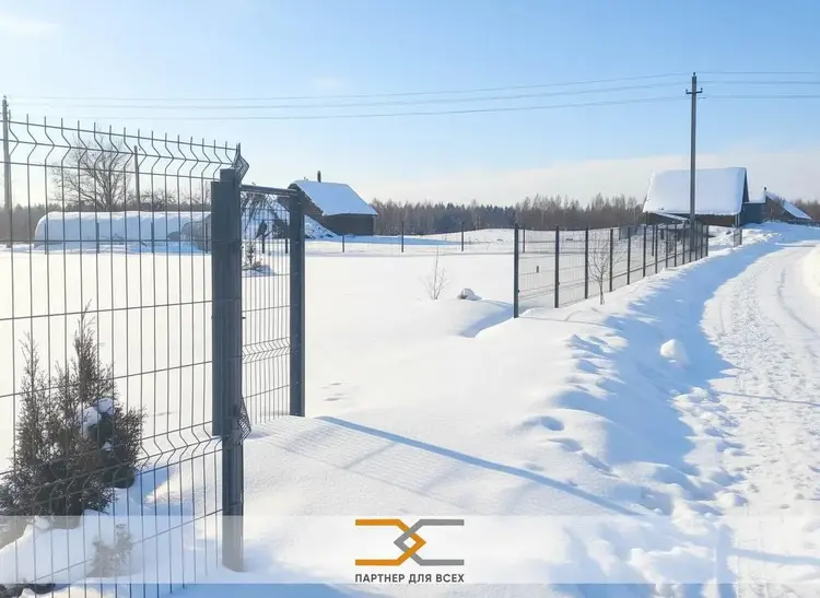 Участок ровный, огорожен со всех сторон евросеткой, частично по периметру высажены туи.