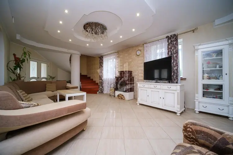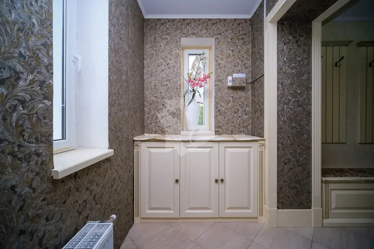 В жилом доме 2 счётчика (двух-фазный и трех-фазный), приточно-вытяжная система, 2 котла Viadrus: 2-ух контурный газовый и твердотопливный (на дровах). Чугунные батареи. Окна Rehau. Дубовый паркет, хрустальные люстры, обои Roberto Cavalli, плитка производства Италия, Польша.