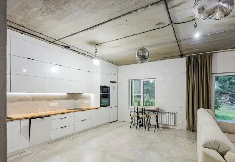 1 этаж: просторная кухня-гостиная с выходом на крытую террасу и свой участок; гардеробная, санузел.