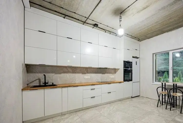 Окна-двухкамерные стеклопакеты, панорамные окна, счетчики газа, счетчики воды, счетчик электричества, стены оштукатурены и окрашены (1 этаж) . Пол - испанская плитка и высококачественный немецкий ламинат.