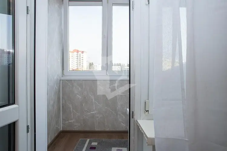 Просторная жилая комната правильной прямоугольной формы (17.2 кв.м) с выходом на застекленную лоджию, где можно наслаждаться утренним кофе или вечерним чтением.