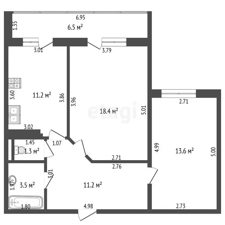 56.9 м2