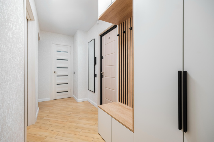 В квартире выполнен современный ремонт в светлых тонах, грамотно зонировано пространство: большая кухня (13 м2) с эркерным окном и две просторные комнаты (17 м2 + 17 м2), также имеется отдельная гардеробная — всё для вашего удобства!