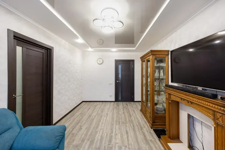 · Прихожая встречает вас не только уютом, но и порядком: здесь вас ждет огромный встроенный шкаф, а также отдельная гардеробная комната — мечта для ценителей организованного хранения.