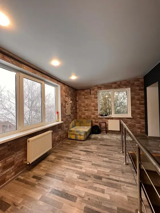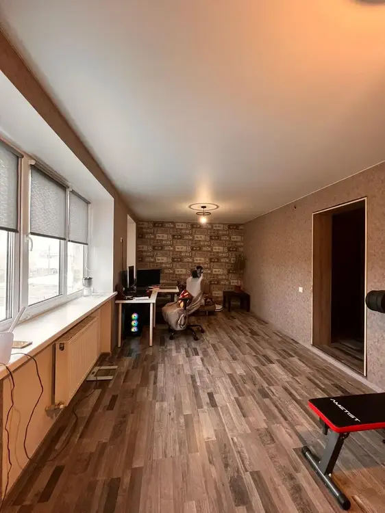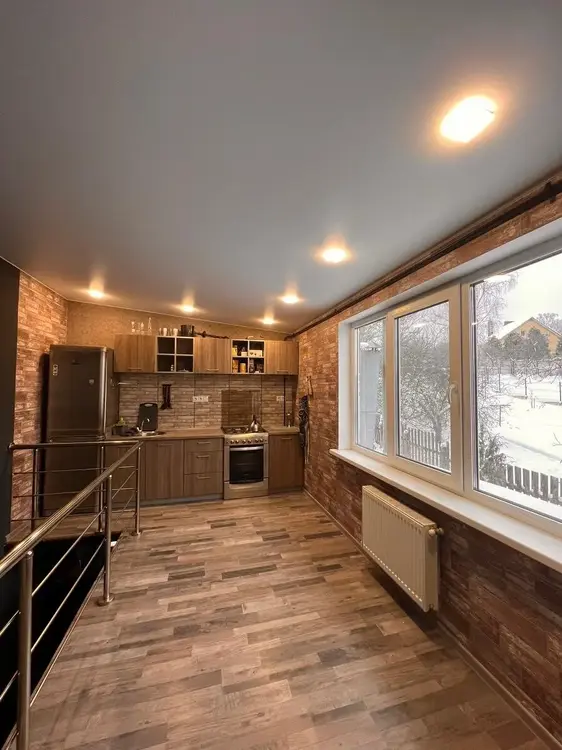 Квартира находится в блокированном кирпичном доме на втором этаже. Есть свой участок земли. Асфальт до дама ,газ заведен в дом. Котел газовый(отопление автономное).Новые батареи.