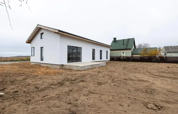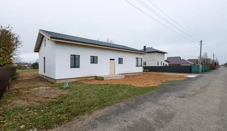 Продается современный одноэтажный дом под отделку в СТ «Буда», в 20 минутах езды на авто от МКАД. Площадь дома 130м2, размеры строения 15,7х9,3 м , высота потолков 3,25 м, в гостиной второй свет , высота 5 м. Скважина 75 м, газ, канализация местная, электричество 220/380 вольт на участке. Сам участок 10 соток в частной собственности.