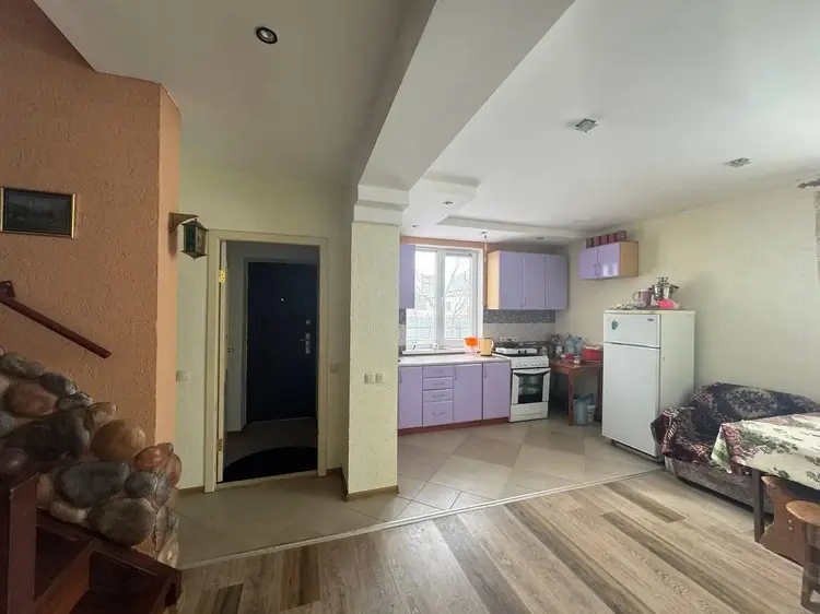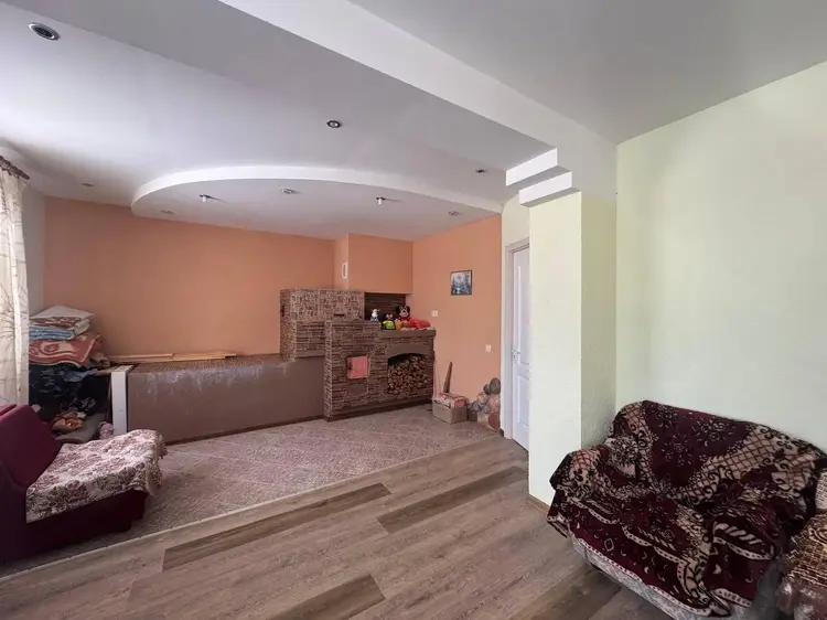 Дом двухэтажный из газосиликатных блоков, утеплен пенопластом, фундамент- монолит, кровля - ондулин, окна-стеклопакеты, полы: ламинат, плитка.