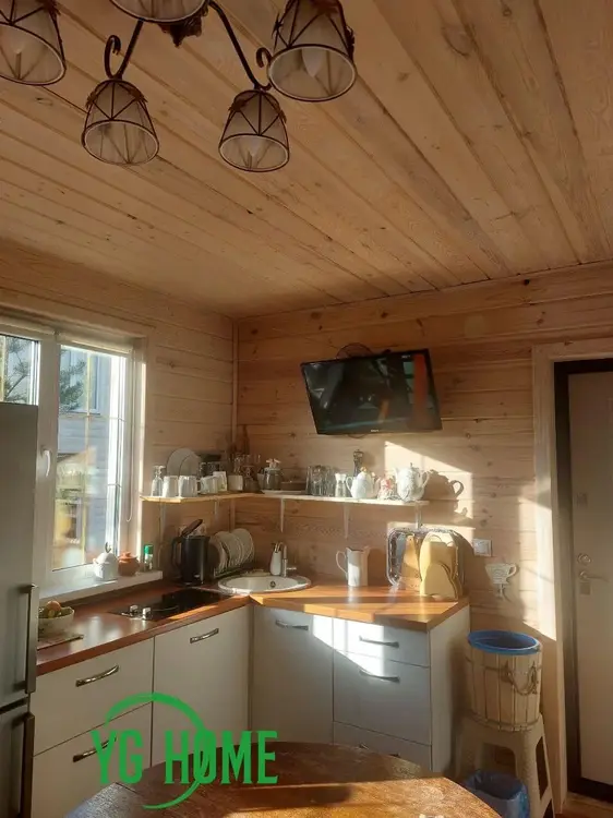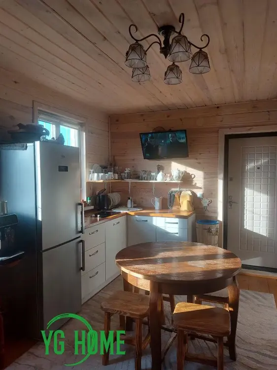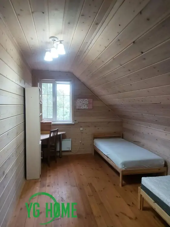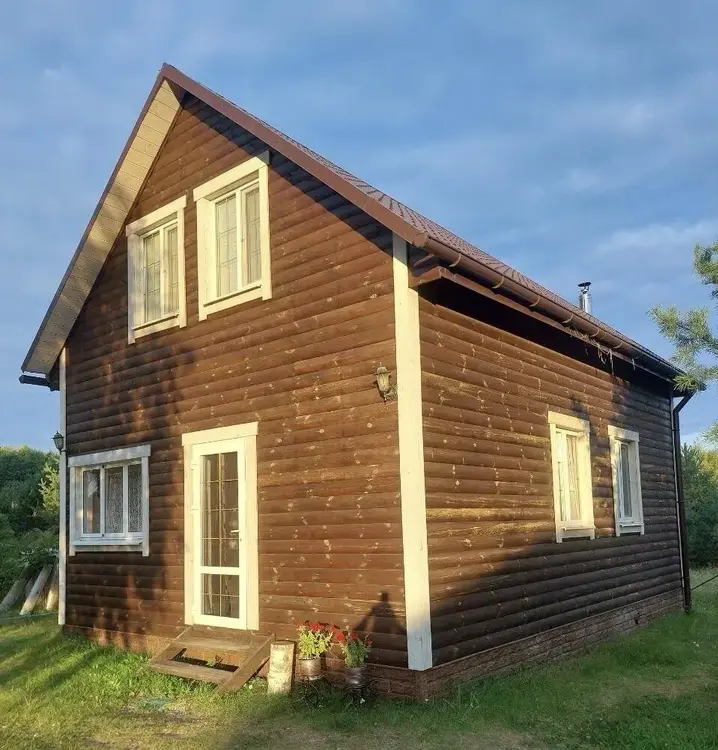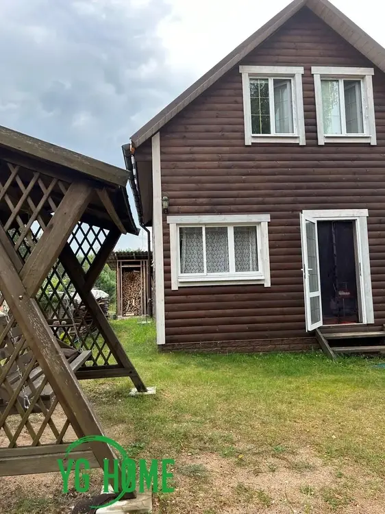 Перекрытия – балки. Окна – современные энергосберегающие стеклопакеты. Внутренняя отделка экологически чистыми материалами. Водоснабжение – скважина. Канализация – местная (переливная). Отопление – электрическое. Есть печь– камин длительного горения. На 1 этаже – кухня-гостиная - 18,3м2, ванная комната, санузел- 9,4 м2, кладовая 4,6м2, крытая веранда 9,8 м2. На 2 этаже – 2 жилые комнаты 26,5м2 и холл 11,7м.2.
