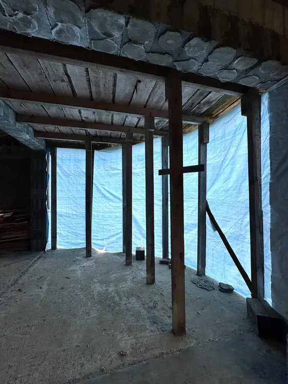 Крыша - металлочерепица. На первом этаже залита стяжка чернового пола.