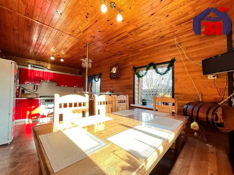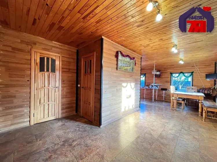 -В доме сделан отличный ремонт: натуральная деревянная отделка стен и потолка наполняет пространство теплом и уютом, а грамотное освещение подчеркивает стиль. Установлены современные окна ПВХ, на вхоже стоит прочная металлическая дверь.