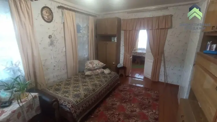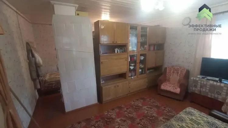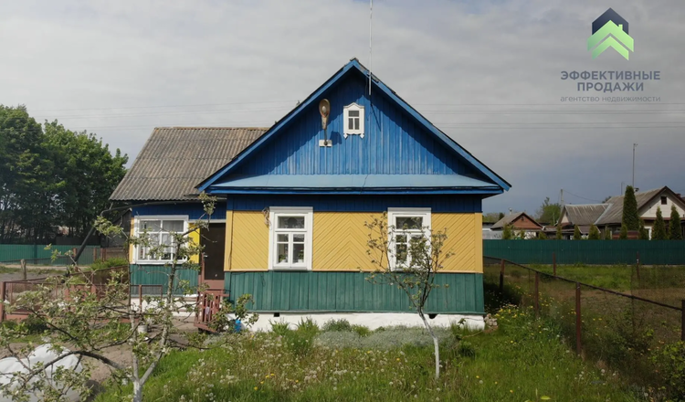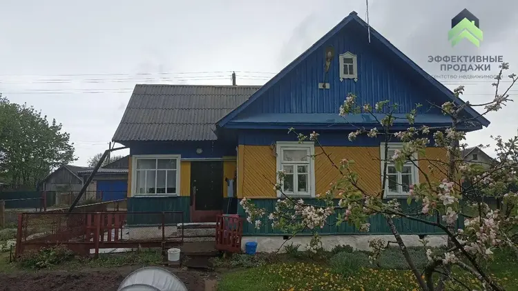 На участке построен одноуровневый бревенчатый дом общей площадью 38,7 кв.м., жилой – 33,6 кв.м. Площадь по СНБ – 55,2 кв.м. В нём две жилые комната (изолированная и проходная), кухня, подсобное помещение, веранда.