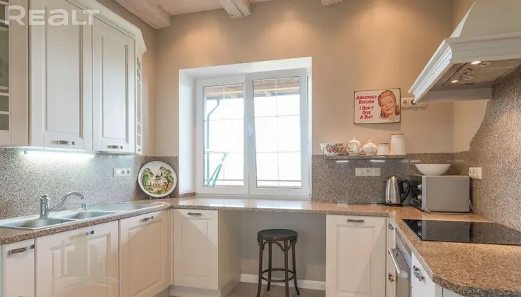 - Кухня соединена со столовой зоной и выходом на просторную террасу.