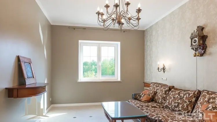 Напольное покрытие комнат- шерсть со льном, сан. узлы – плитка, обои производство США, сан. техника производство Франция, двери массив ольхи, подоконники, ступени – натуральный камень производство Италия. Мебель и предметы интерьера (металл/стекло/массив дерева) производства Италия