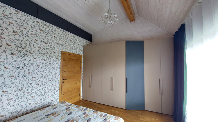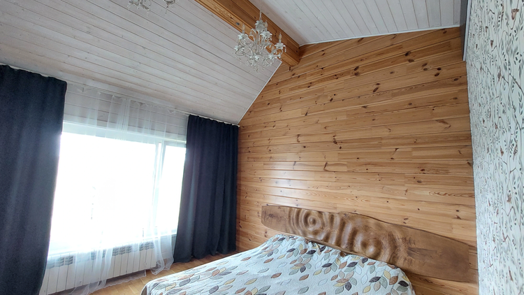 • Спальная комната с большой кроватью, вместительным шкафом, широким окном. Высота потолка – до 4,5м.