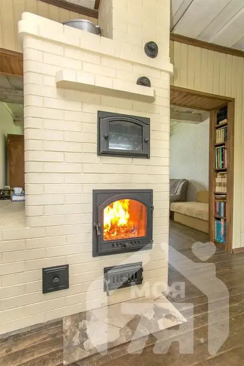 -На первом этаже находится просторная кухня-столовая, площадью 18 кв.м. с великолепной новой белой печью-камином, где каждый вечер будет наполняться теплом и уютом. Яркое солнце будет освещать эту часть дома во второй половине дня, создавая атмосферу уюта и покоя. Гостиная с теплой лежанкой идеально подходит для тихих ужинов или созерцания огня у камина.