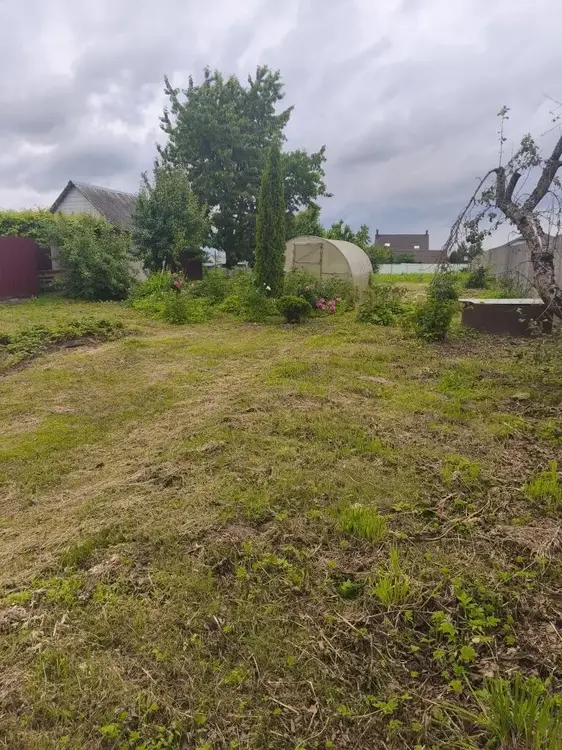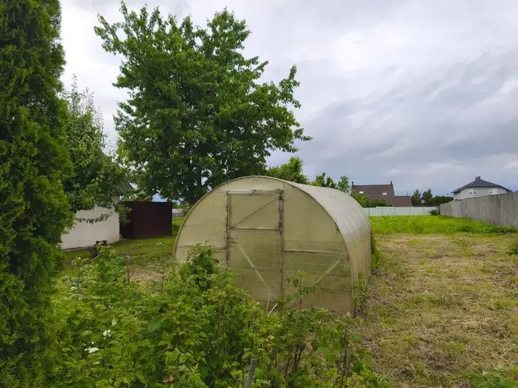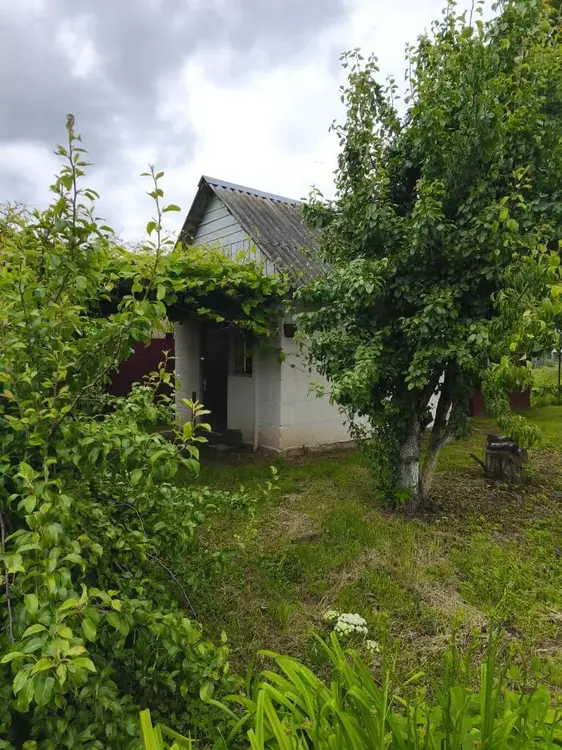 Домик маленький, так как раньше был баней. Участок 14.4 сотки в частной собственности. Коммуникации: центральный водопровод на участке, электричество заведено в дом, газ у границы участка.