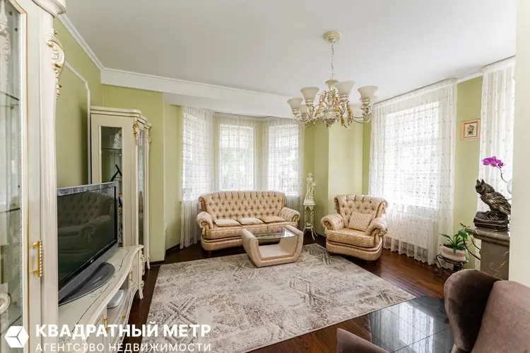 Трехэтажный дом построен по индивидуальному архитектурному дизайн-проекту и отличается продуманной планировкой и высокими потолками.