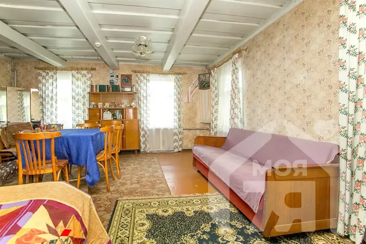 - Общая площадь дома 65,2 м², жилая - 46,8 м². Дом деревянный, обложен кирпичом, крыша перекрыта шифером, проведена новая электропроводка.