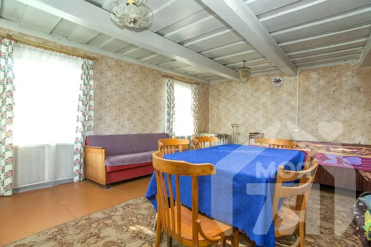 - Общая площадь дома 65,2 м², жилая - 46,8 м². Дом деревянный, обложен кирпичом, крыша перекрыта шифером, проведена новая электропроводка.