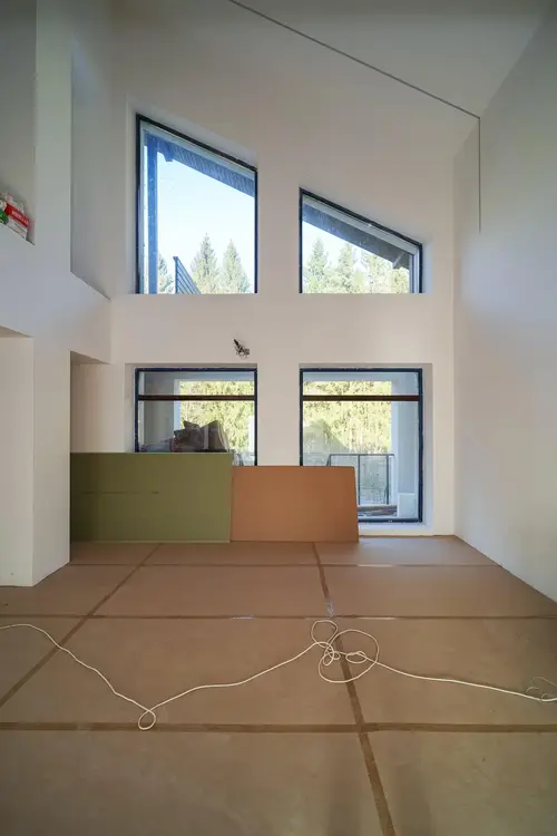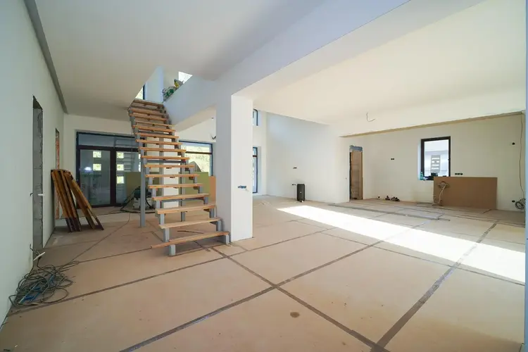 Дом c чистовой отделкой, двухэтажный, с монолитным фундаментом, стены из блоков 400 мм, перекрытия железобетонные. Кровля – гибкая черепица. Окна – экологичные алюминиевые Алютех.