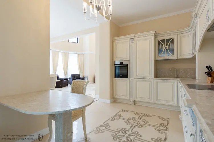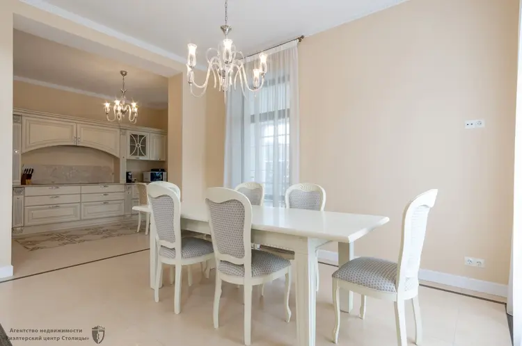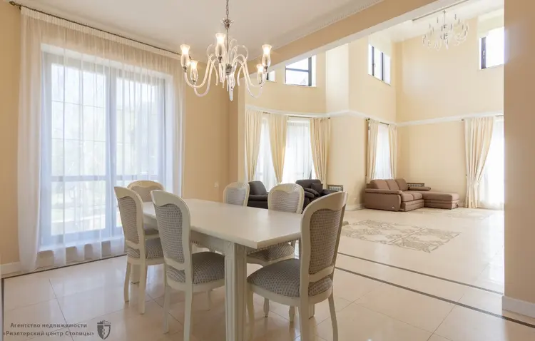 Данный особняк можно смело отнести к жилью премиум класса. Поселок закрытого типа на 10 домов, охраняемая территория. Близость Дубровинского водохранилища. На участке в 35 соток расположились три строения, каждое из которых имеет индивидуальную систему отопления и водоснабжения: дом для проживания, СПА комплекс и дом для охраны с гаражом на три автомобиля. Жилой дом площадью 352 м2 имеет три уровня. В гостиной второй свет, камин на дровах, портал из натурального камня, кухня массив, вся техника встроена. С кухни выход на застекленную отапливаемую террасу. Сантехника villeroy, плитка в с/узлах Versace. В в цокольном этаже дома сауна и бильярдный зал, есть с/узел и подсобное помещение. В СПА комплексе имеется турецкий хамам, джакузи и бассейн с противотоком и массажной пушкой. На втором этаже располагаются две гостевые спальни и с/узел. Имеется просторная кухня, оборудованная всей необходимой техникой для приема гостей. С кухни есть выход на застекленную террасу, на которой располагается каменный мангал и зона барбекю. В доме для охраны кабинет (серверная), санузел с душевой и место для ночевки обслуживающего персонала на втором этаже. Гараж на три автомобиля.