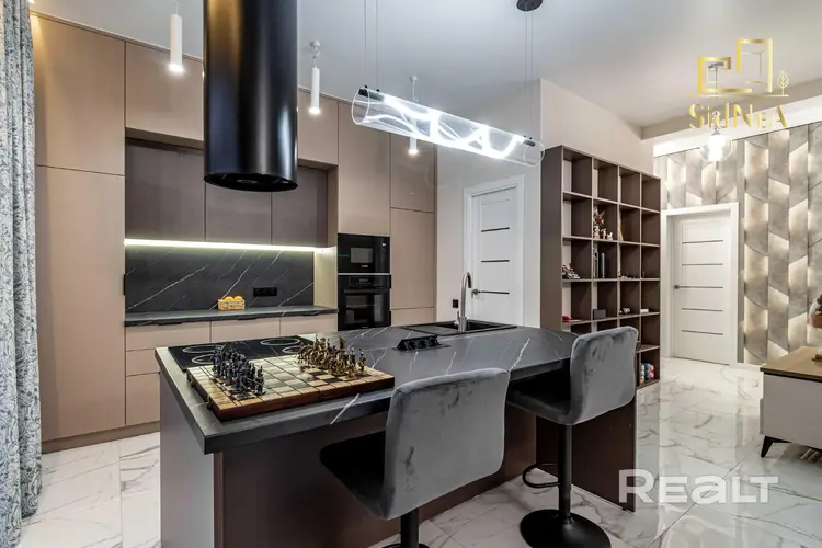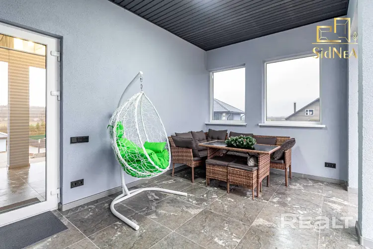 Площадь застройки 156,85 м.кв, СНБ 125,9 м.кв, общая 111,1 м.кв, жилая 77,8 м.кв, в том числе кухня-гостиная 30,4 м.кв, общая ванная комната 4,4 м.кв и туалет 3,1 м.кв., две мастер-спальни С/У 3,5 м.кв и 3,2 м.кв. соответственно. Терраса 14,8 м.кв.