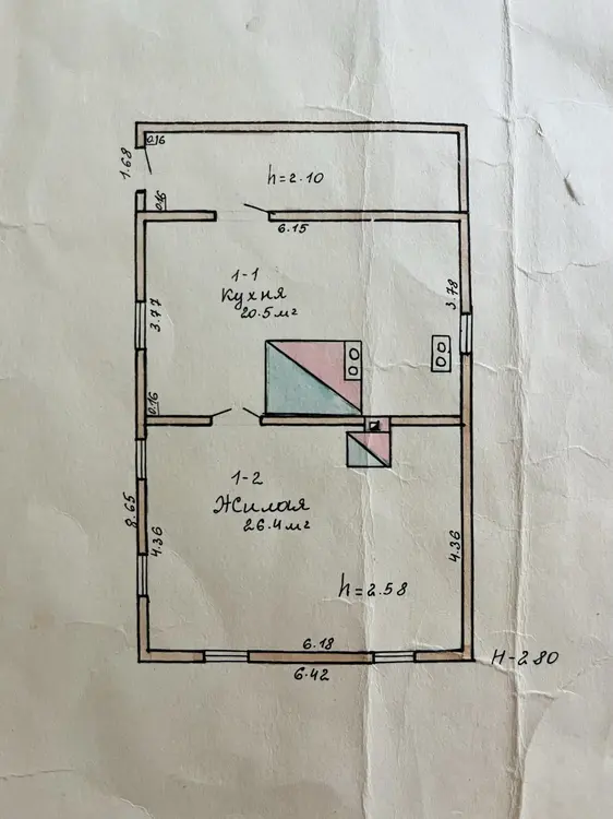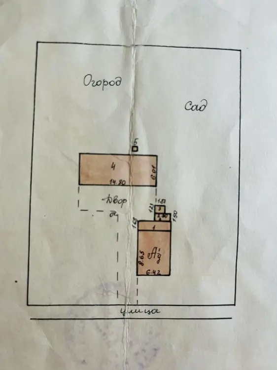 Деревянный дом из бруса (46,9 м2) - требует капитального ремонта. Две комнаты.Погреб на улице.Яблони и сливы (требуют омолаживающей обрезки). Крыша и потолок требуют ремонта. Печь под замену.