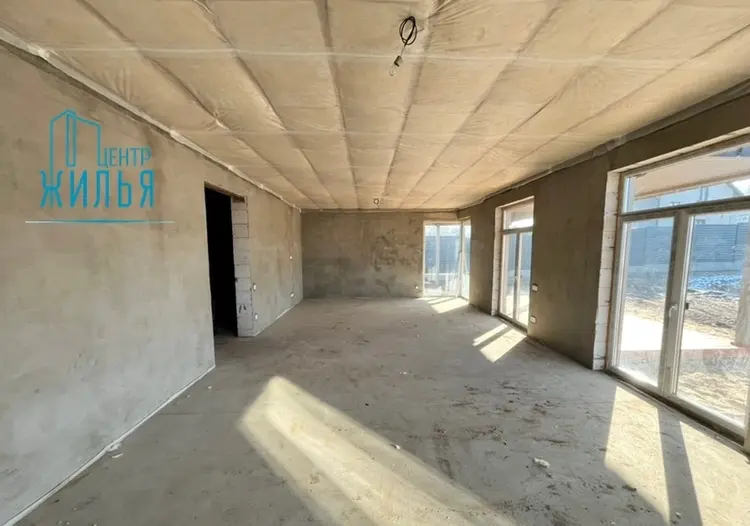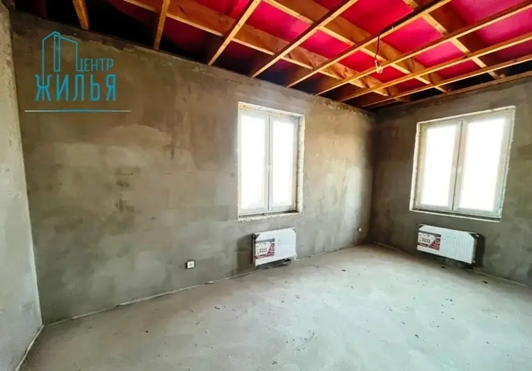 Залита черновая стяжка и армопояс, разведена канализация, установлены окна ПВХ с ламинацией и энергосбережением (из них 4 – в пол).