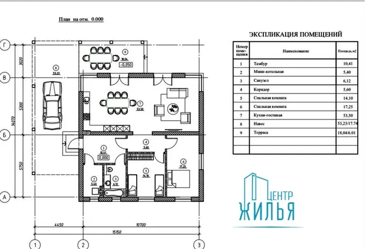 В доме большая гостиная, совмещенная с кухней, 2 просторные изолированные жилые комнаты, раздельный санузел, терраса, навес для 2х автомобилей. Планировка дома позволяет спроектировать еще одну спальню.