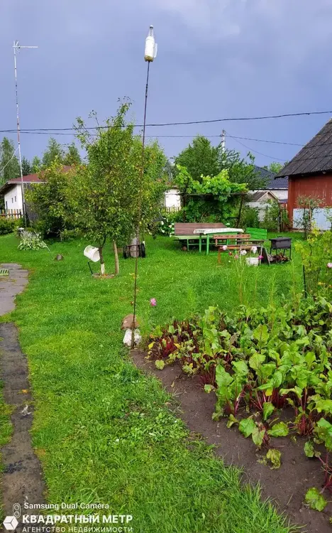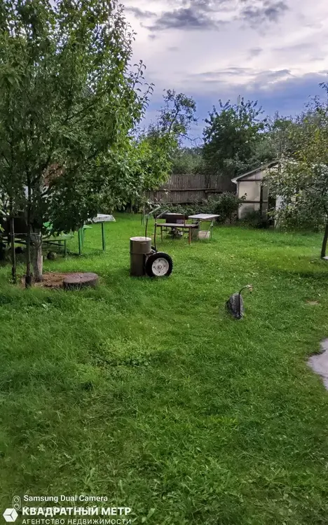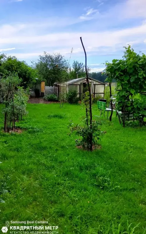 Участок очень аккуратный, ухоженный, с плодоносящими различными деревьями, декоративными кустарниками и цветами. Огорожен. Хороший парник. Есть ворота для заезда и достаточно места для стоянки автомобиля. Гараж. Колодец. На территории участка расположено достаточно различных хозпостроек, глубокий обустроенный бетонный погреб для хранения.