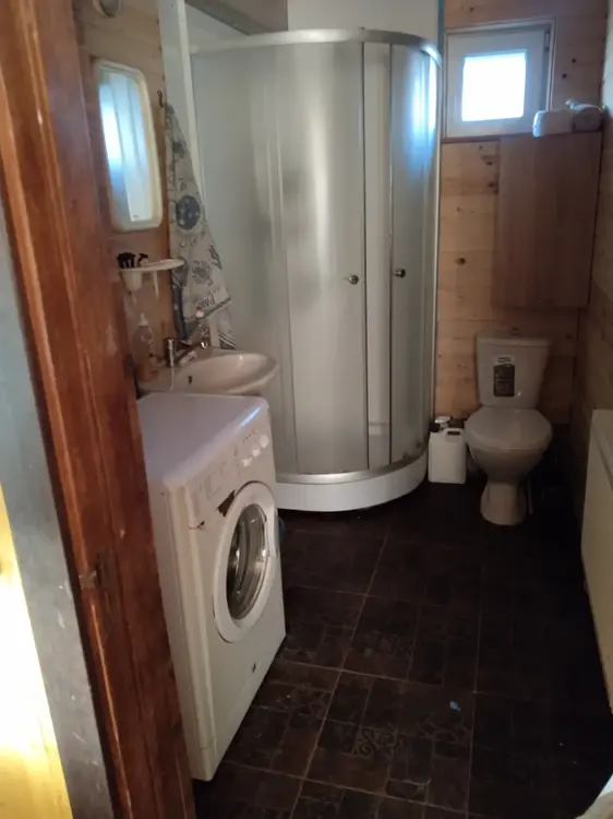 Общая площадь 64,8 м² (жилая 51,8 м²). Вода (скважина глубиной 37 м.) в доме, санузел, душевая кабина. Отопление — электрокотёл, во всех комнатах батареи.
