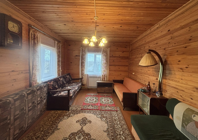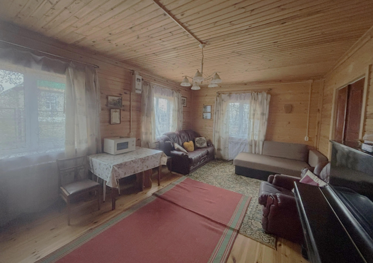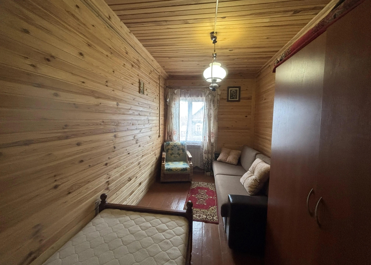 В доме 3 жилых комнаты, стены обшиты деревом.