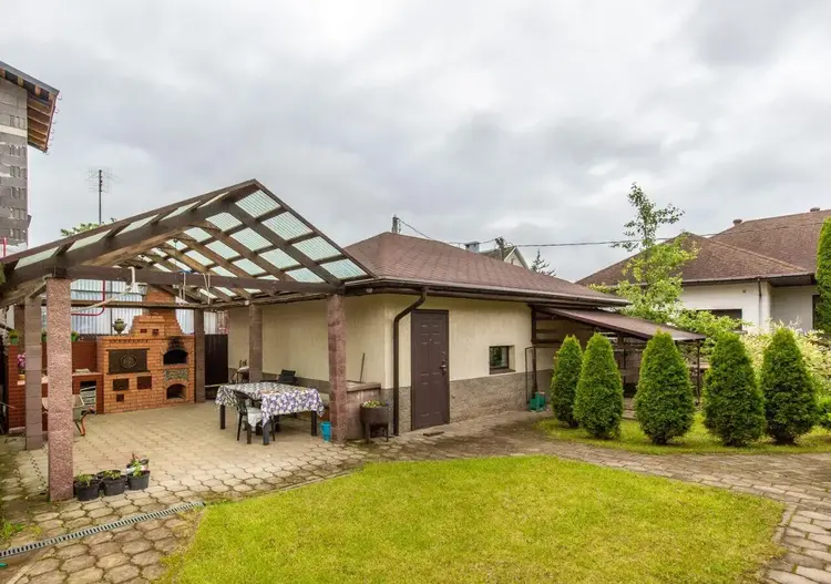 Большой, утепленный гараж (59м2) с улицы закрывается роллетами, с внутренней стороны — распашные ворота. Имеется вольер 8 м2. "Зеленая" зона участка оснащена подземной системой полива, скважиной с насосом, теплицей, высокими грядками.