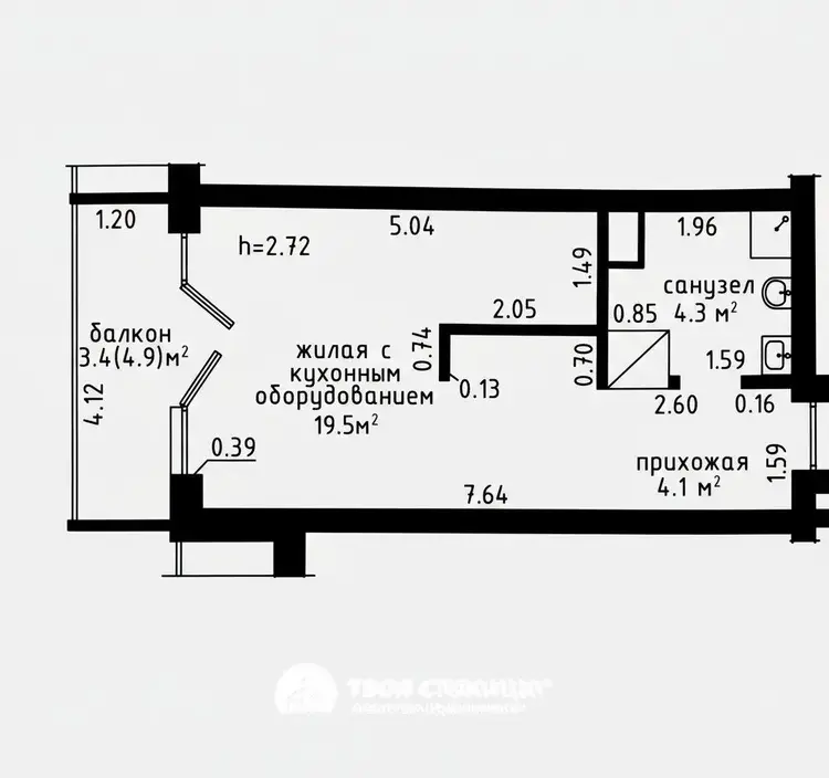 Квартира находится на 4 этаже 23-этажного панельного дома 2021 года постройки по адресу Авиационная ул. 16. Общая площадь составляет 31.3 кв.м, жилая – 19.5 кв.м. Высота потолков – 2.72 м. Выполнен хороший ремонт, что позволяет сразу заселиться. Установлены металлическая дверь и стеклопакеты, есть счетчики воды, застекленный балкон. Санузел совмещенный, окна выходят на юго-восток, обеспечивая обилие света.