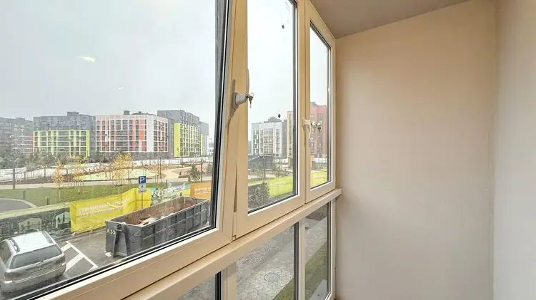 Есть отдельная гардеробная, раздельный санузел и просторная застекленная лоджия.