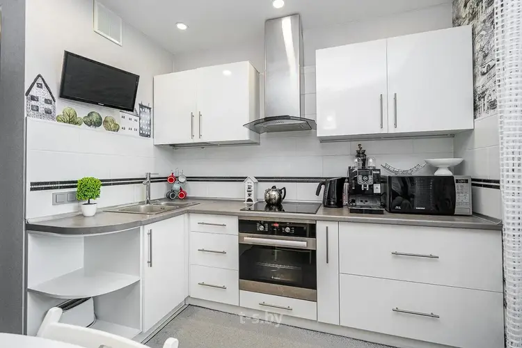 Квартира по площади равна современной евро-двухкомнатной. Интерьер преимущественно в светлой цветовой гамме, что визуально делает объект ещё более просторным. Предлагаемый вариант с ремонтом. В отделке использованы качественные материалы, всё продумано до мелочей. Напольное покрытие: ламинат и плитка. Высота потолков (2,67 м.) с точечными и подвесными осветительными приборами. В оконных проёмах установлены стеклопакеты с профилем из ПВХ. Оборудовано множество мест хранения, в том числе вместительный шкаф-купе и гардеробная. Встроенная кухонная мебель с техникой от ведущих профильных производителей: духовой шкаф, варочная панель, вытяжка. Санузел облицован кафельной плиткой актуального дизайна, установлена ванна и мебель для ванной комнаты. Подключены приборы учёта воды, оптоволоконная связь, домофон. Межкомнатная дверь из МДФ, входная металлическая.