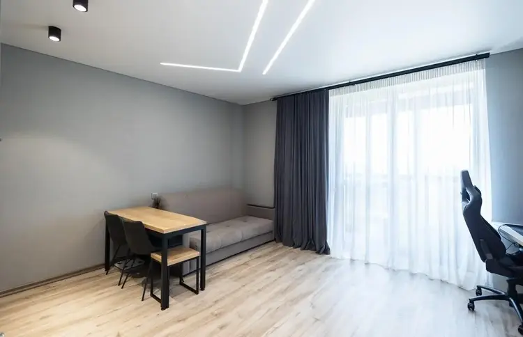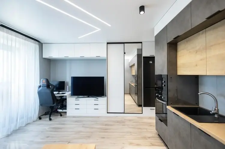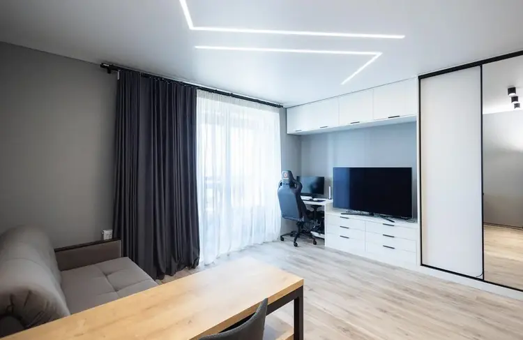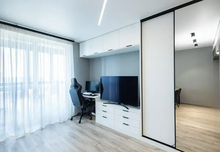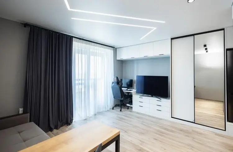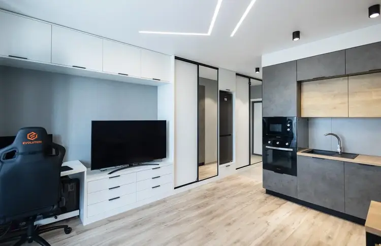 В студии выполнен современный, стильный ремонт с использованием качественных материалов, функциональная кухня, вместительный шкафы, большой совмещённый санузел, просторная застеклённая лоджия.