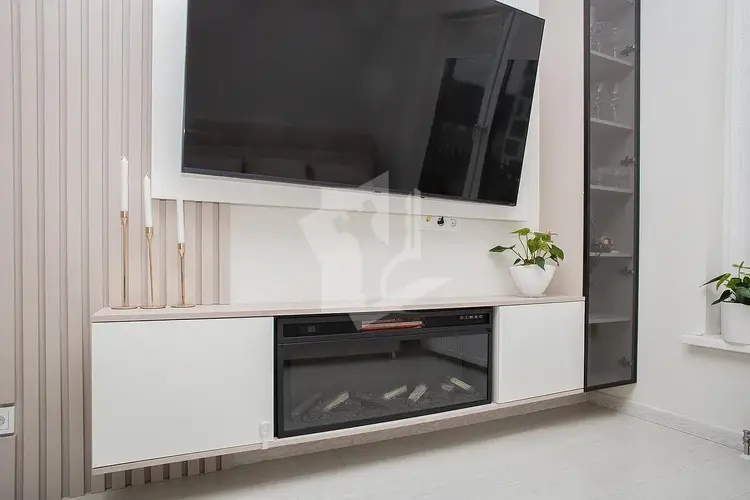 Шикарный камин, который идеально вписывается в дизайн гостиной.