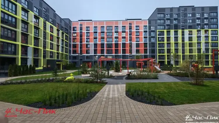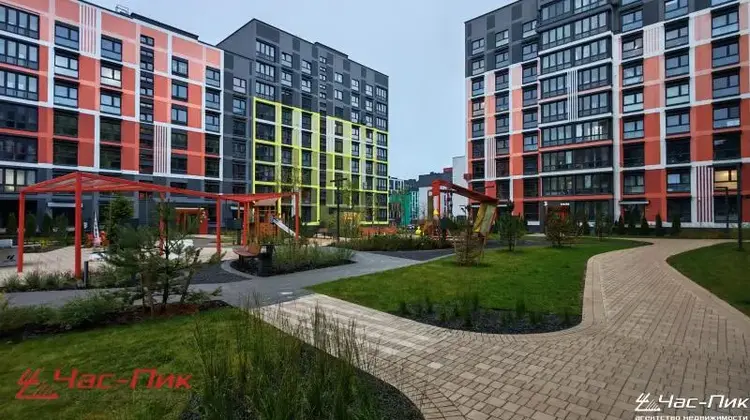 - Озеленённые дворы без машин, безопасные игровые площадки.